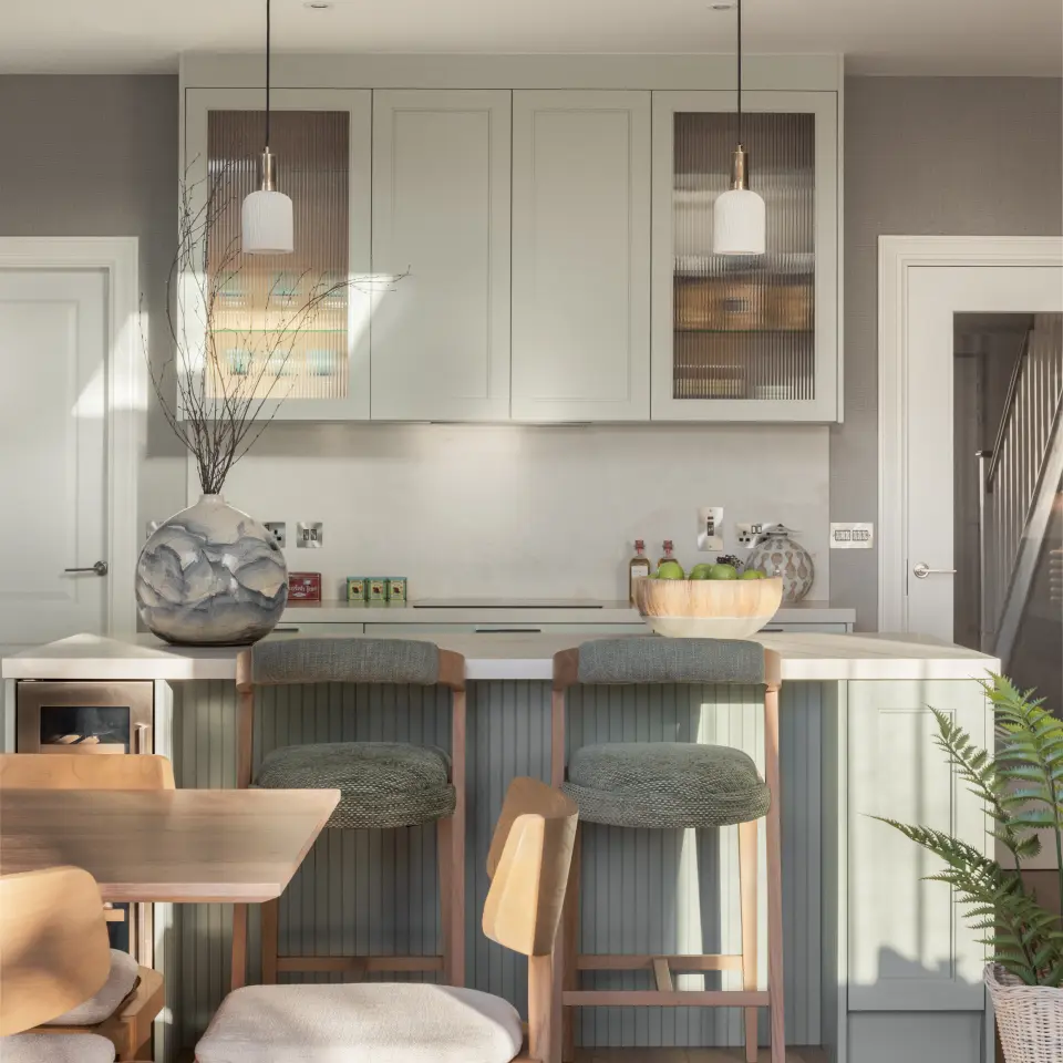 Custom designed contemporary framed, kitchen units & bespoke internal cabinetry.